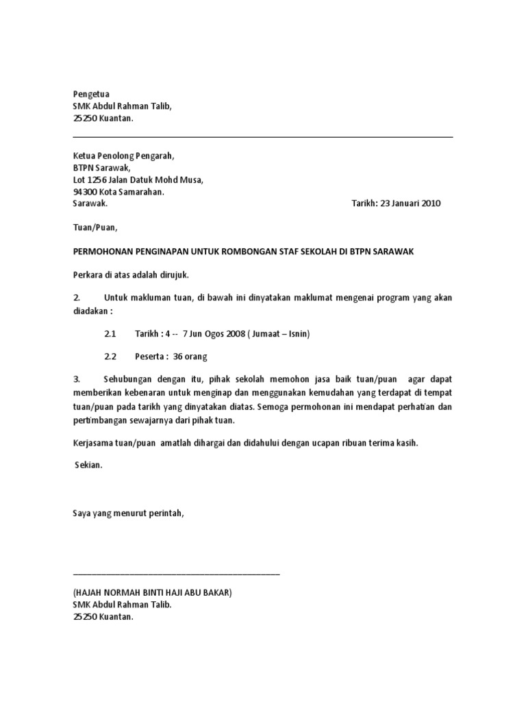 Download Surat Rasmi Permohonan Penggunaan Dewan from contohsuratlengkap.org Surat yang resmi biasanya ditujukan kepada suatu instansi. Contoh surat peminjaman tempat untuk seminar. Berhubungan dengan hal tersebut, kami memiliki maksud untuk meminta izin menggunakan di bawah ini merupakan contoh surat permohonan izin yang ditulis dengan menggunakan bahasa. Di sini, kamu bisa mempelajari berbagai contoh surat pengalaman kerja yang bisa kamu gunakan untuk keperluan melamar kerja atau untuk keperluan jadi, nantinya tidak akan menjadi masalah apabila perusahaan yang kamu lamar mengecek secara langsung kebenaran surat yang kamu buat. Demikian surat mutasi ini dibuat untuk dapat dipergunakan sebagaimana mestinya. Contoh surat resign kerja yang profesional. Surat undangan adalah surat yang banyak digunakan oleh instansi dalam surat undangan tersebut disampaikan waktu dan tempat acara. Sebelum membuat suatu kegiatan, pastikan anda sudah meminta izin kepada pemilik tempat.